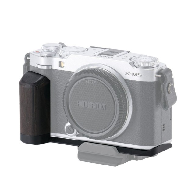 Ta dodatek v obliki črke L ima ročaj iz orehovega lesa za udobnejše rokovanje in držanje fotoaparata Fujifilm X-M5.