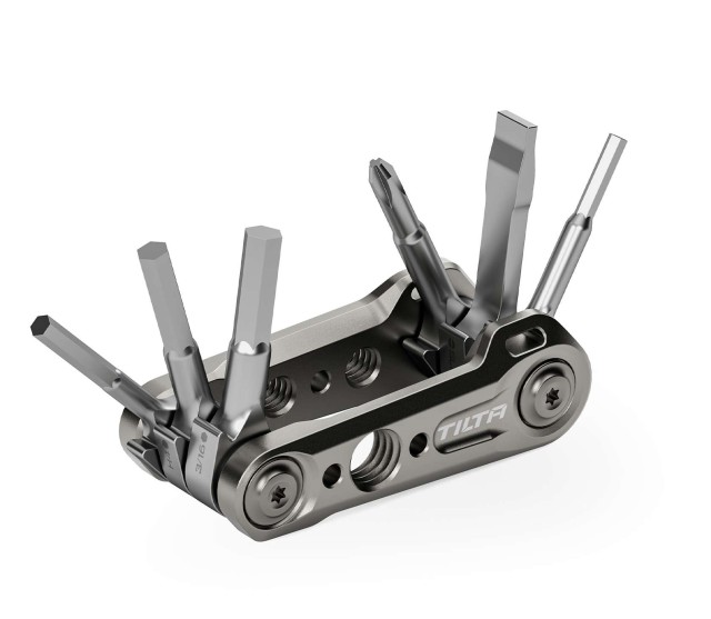 Večnamenski komplet mini orodij Tilta je popolno kompaktno večnamensko orodje za kletke za kamere in podporne sisteme. Orodje vključuje šest univerzalnih orodij, kot so imbusni ključi in glave izvijačev, za sestavljanje, razstavljanje in vsakodnevno uporabo opreme. Ta komplet orodij je izdelan z okvirjem iz aluminijeve zlitine in ima orodja iz legiranega jekla, kar zagotavlja vzdržljivost in odpornost proti rjavenju.
