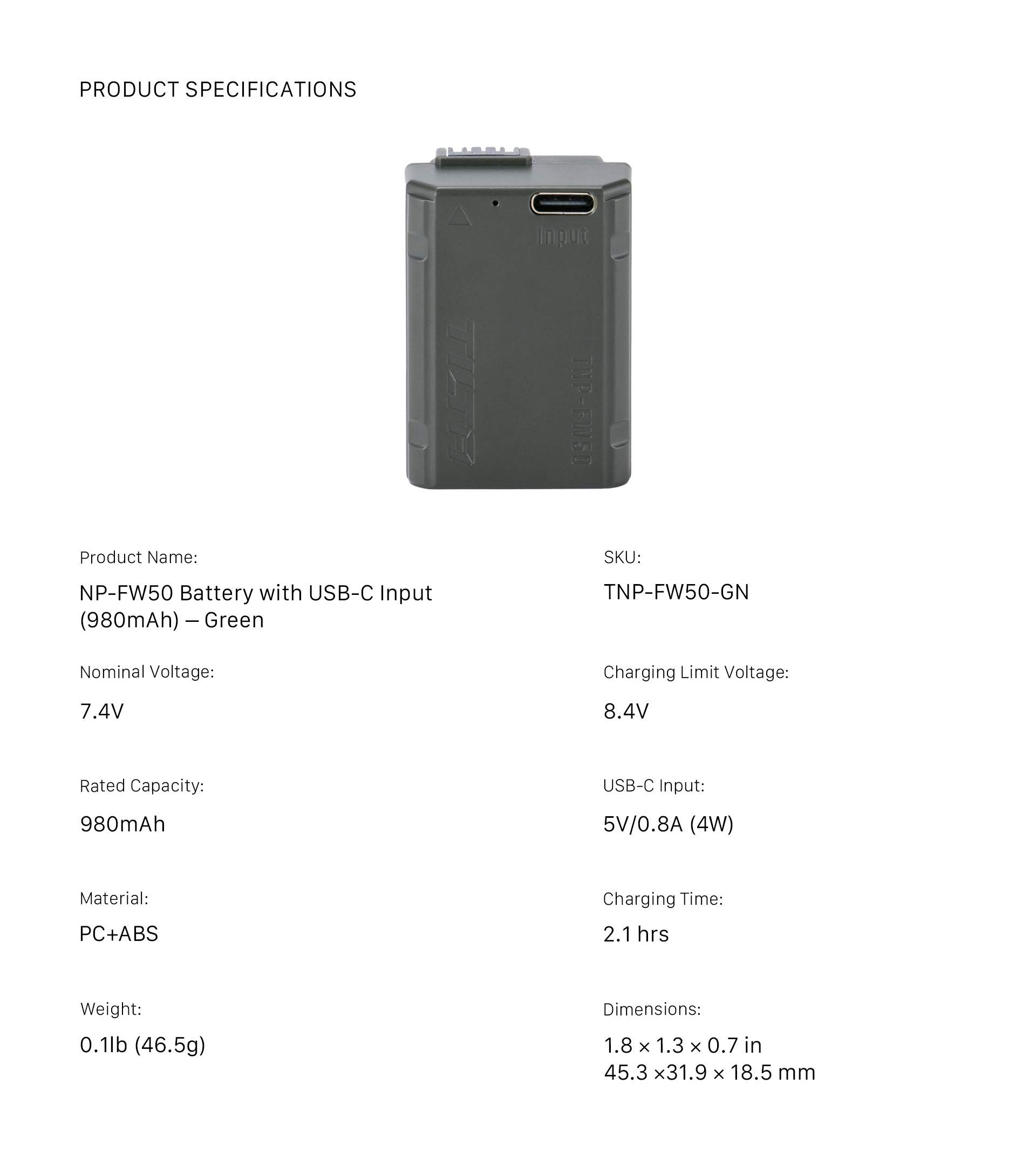 Ne glede na to, ali ste profesionalec ali navdušenec, je NP-FW50 pametna, učinkovita in varna rešitev za napajanje za vse vaše potrebe v fotografiji in videografiji.