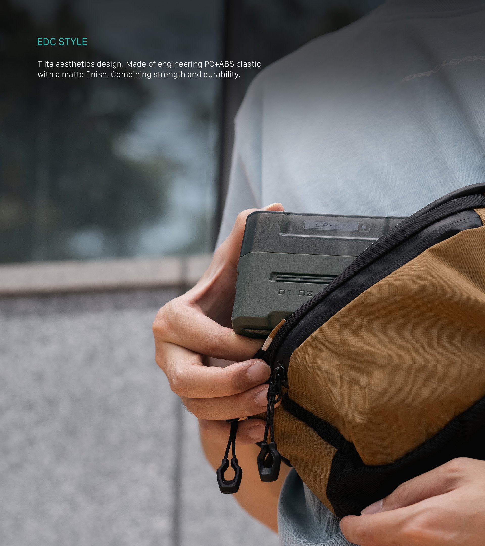Prenosno polnilno postajo Tilta odlikuje zasnova v slogu EDC s Tiltino značilno estetiko, zato je eleganten in funkcionalen dodatek k vaši opremi.