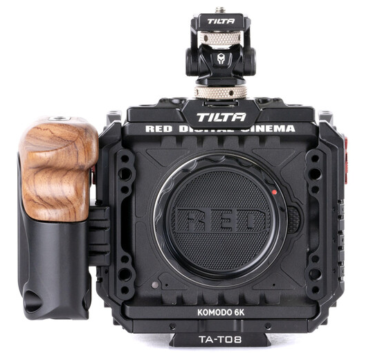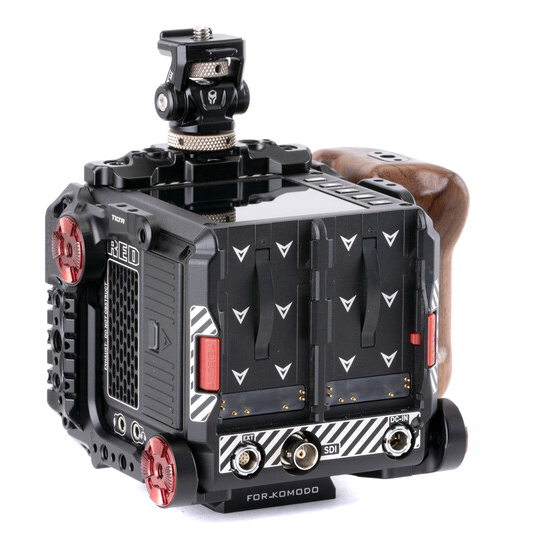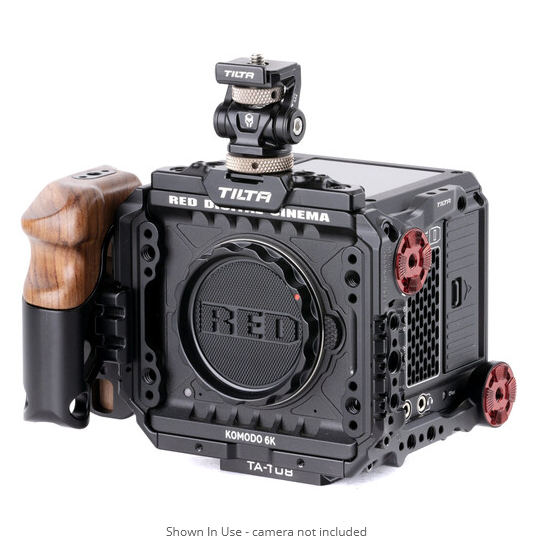 Tilta TA-T08-A-B RED KOMODO Kit A (črn) je osnovna oprema za RED KOMODO 6K, ki združuje lahki aluminijasti okvir s štirimi ARRI rozetami in obsežnimi pritrdilnimi navoji, desni leseni ročaj NATO za udobno ročno upravljanje, nagibno nastavljiv nosilec monitorja s hladnim čevljem ter spodnje plošče Arca-Swiss in Manfrotto za hitro sprostitev – vse to v enem cenovno dostopnem paketu, ki zagotavlja zaščito, ergonomijo in hitre prehode med stativom in kardanskim obesom.