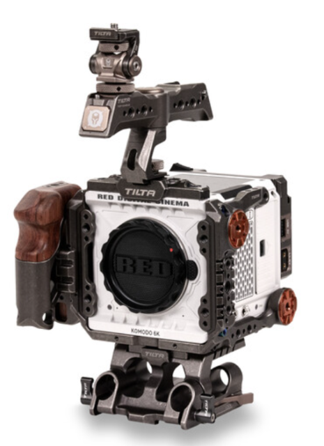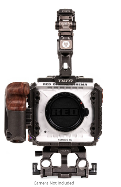 Tilta TA-T08-EAB RED KOMODO Kit E (Tactical Gray, Gold Mount) je celovit, za kinematografijo pripravljen nosilec, zasnovan za optimizacijo rokovanja, razširitev možnosti pritrditve in izboljšanje fleksibilnosti napajanja za kamero RED KOMODO. Ta robusten komplet vključuje Tilta Full Camera Cage, ki ponuja več pritrdilnih točk 1/4"-20 in 3/8"-16 ter štiri rozete standarda ARRI za dodatke in stranske ročaje.