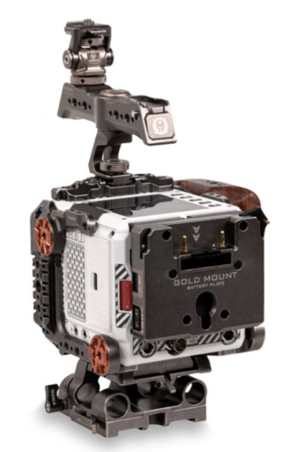Gold Mount baterijska plošča ponuja profesionalno rešitev za napajanje, zaradi česar je sistem KOMODO bolj primeren za dolge produkcije. S pravim lesenim ročajem za izboljšano ergonomijo, Quick Release Top Handle za dinamično delovanje na vrhu, nagibnim nosilcem za monitor, 15-mm LWS osnovno ploščo in Arca-tipom ploščo za hitro sprostitev, ta komplet opremi vaš KOMODO za praktično vsak scenarij produkcije.