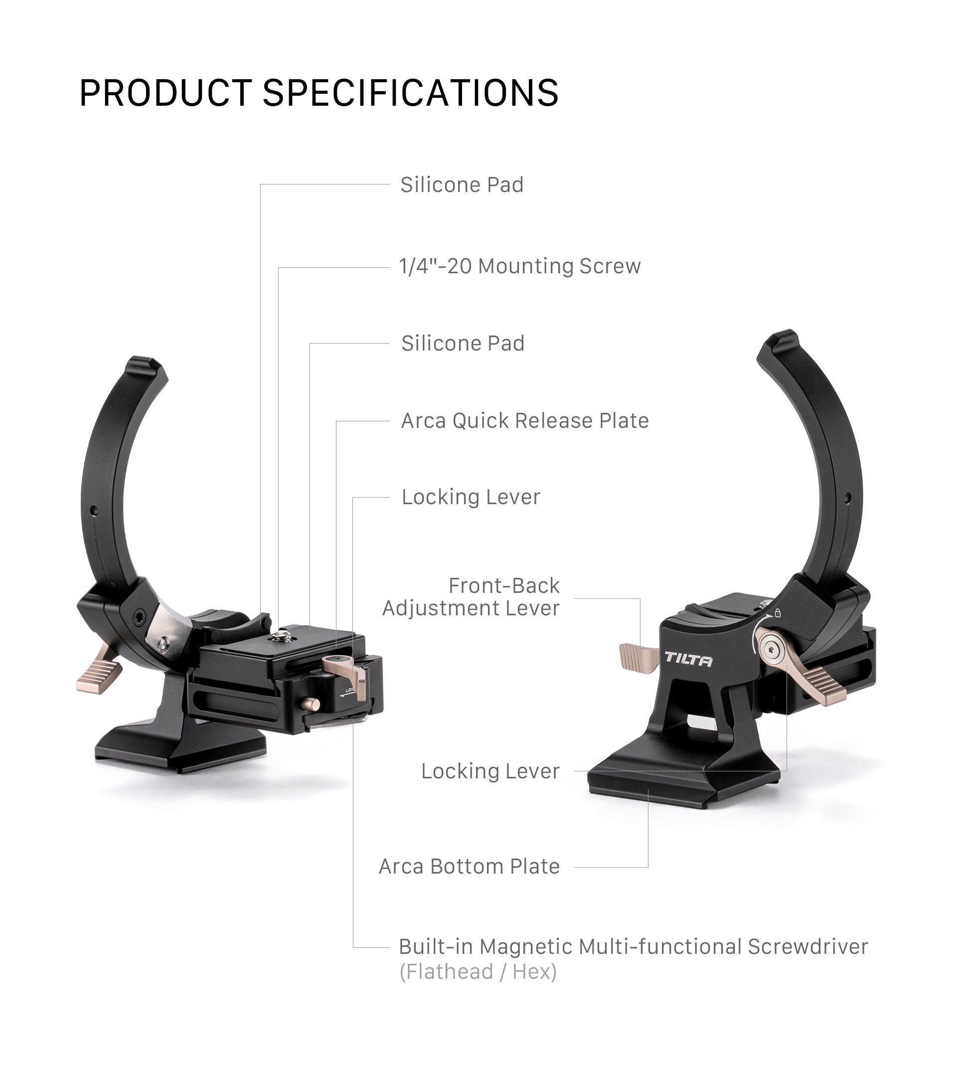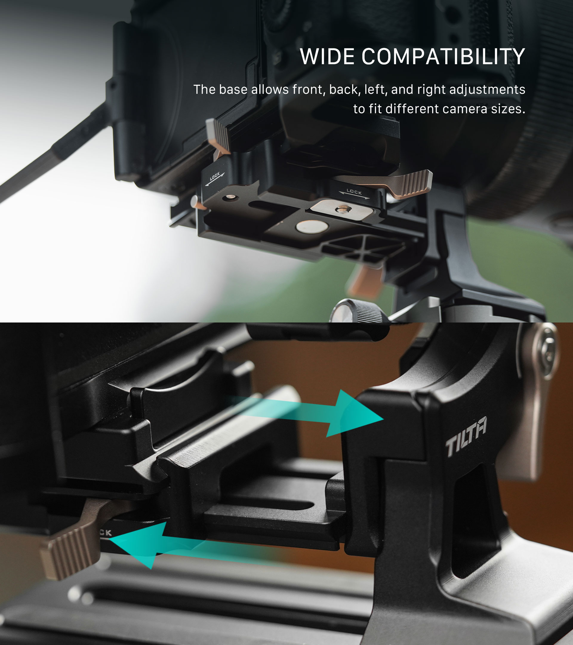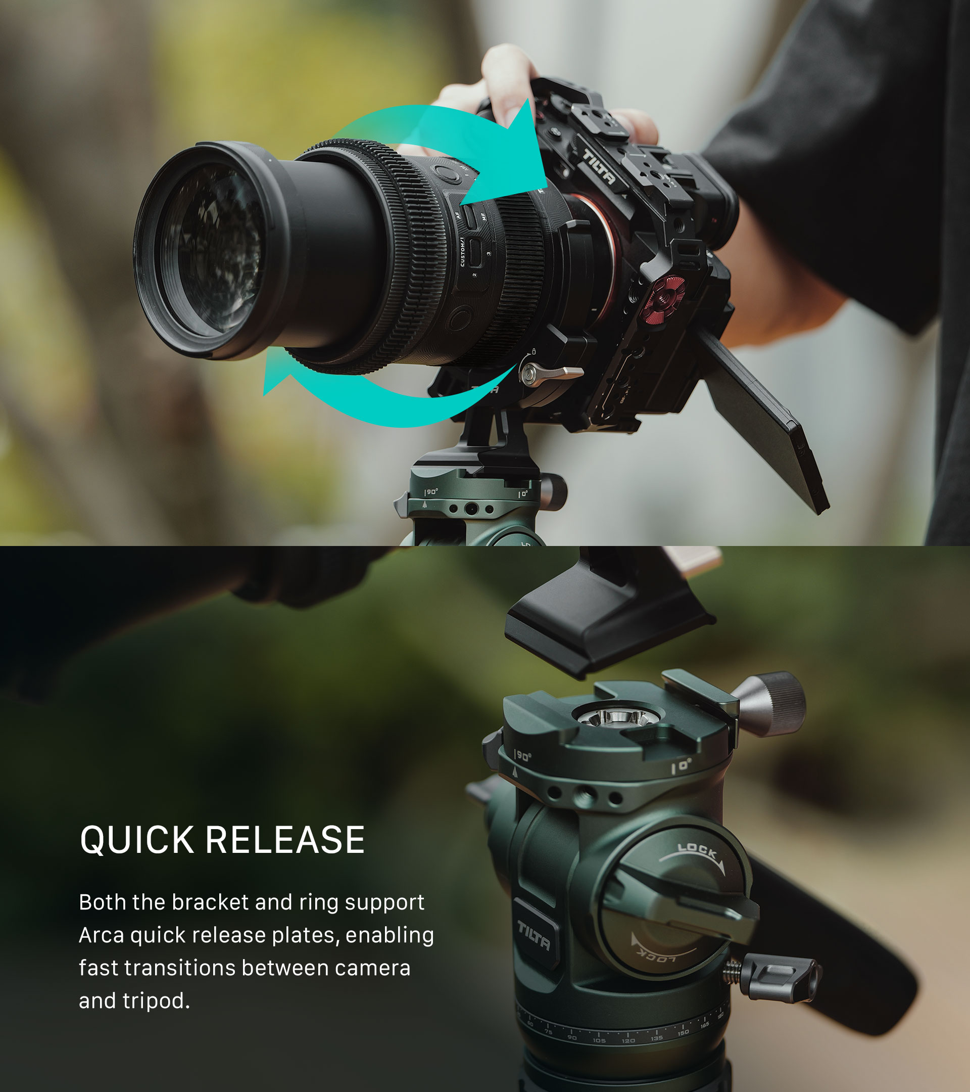 Osnova tega dodatka je ploščica Arca za hitro sproščanje, ki se lahko pritrdi na številne sisteme, kot so naša serija stativov ali gimbali DJI Ronin.