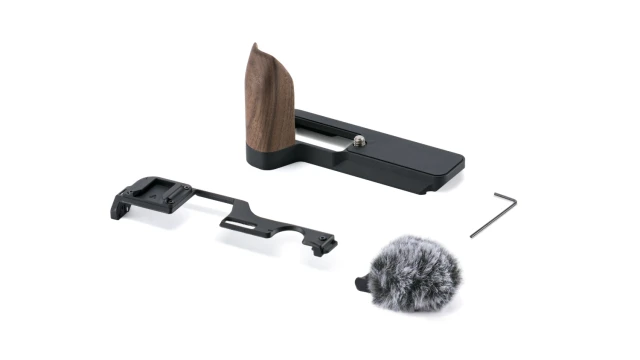 Osnova tega osnovnega vintage kompleta za Canon PowerShot V1 je pritrdilna plošča z ročajem iz orehovega lesa, ki omogoča udobnejše upravljanje in rokovanje s fotoaparatom, hkrati pa ostaja kompakten in primeren za potovanja.