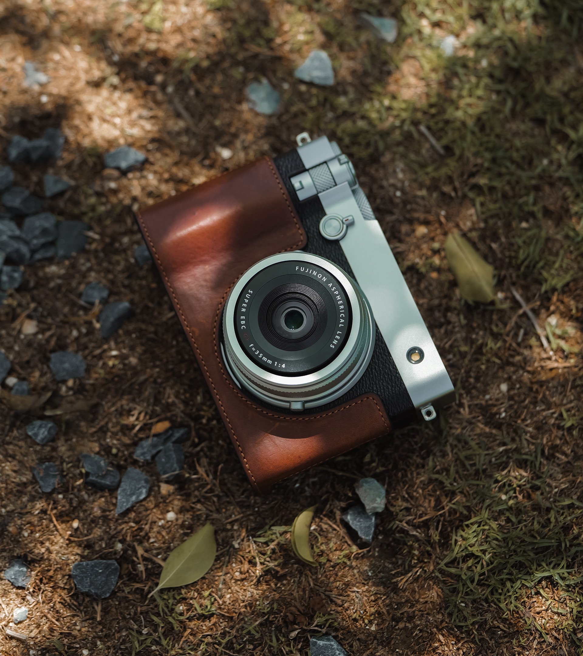 Predstavljamo Vintage Camera Cage za Fujifilm GFX100RF Lightweight Kit. Ta komplet vključuje usnjeno torbico za fotoaparat Fujifilm GFX100RF, ki se pritrdi z vijakom 1/4″-20 in uporabnikom omogoča udobnejše upravljanje in rokovanje s fotoaparatom prek vgrajenega ročaja.