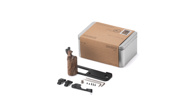 Osnova tega kompleta je nosilec v obliki črke L z lesenim ročajem, izdelanim iz orehovega lesa, ki omogoča udobnejše upravljanje in rokovanje s fotoaparatom.