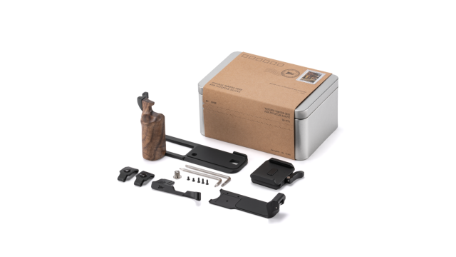 Predstavljamo vintage kletko za fotoaparat za potovalni komplet Fujifilm X100VI. Ta komplet vključuje vrsto lahkih dodatkov, ki izboljšujejo funkcionalnost fotoaparata X100VI, hkrati pa ohranjajo sistem kompakten, a zmogljiv. Osnova tega kompleta je nosilec L z lesenim ročajem, izdelanim iz orehovega lesa, ki omogoča udobnejše upravljanje in rokovanje s fotoaparatom.