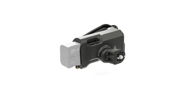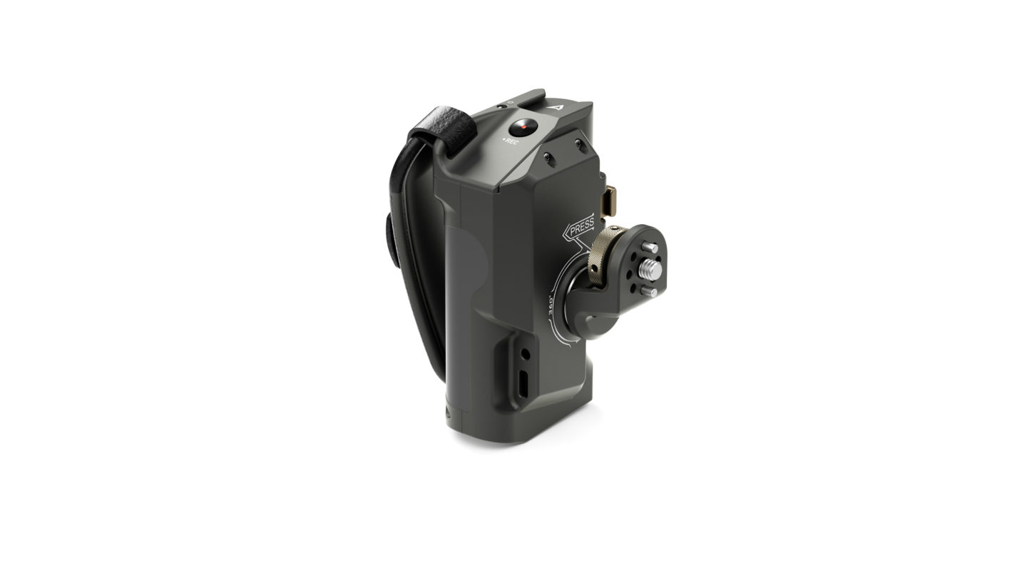 To napredno držalo se pritrdi na levo stran kletk za kamere Tiltaing. Vhod za baterijo na dnu ročaja omogoča uporabo baterije Sony F570 za napajanje različnih dodatkov prek 8-voltnega USB-C in 12-voltnega enosmernega izhoda.