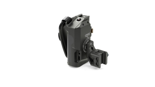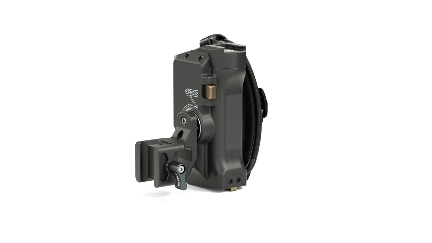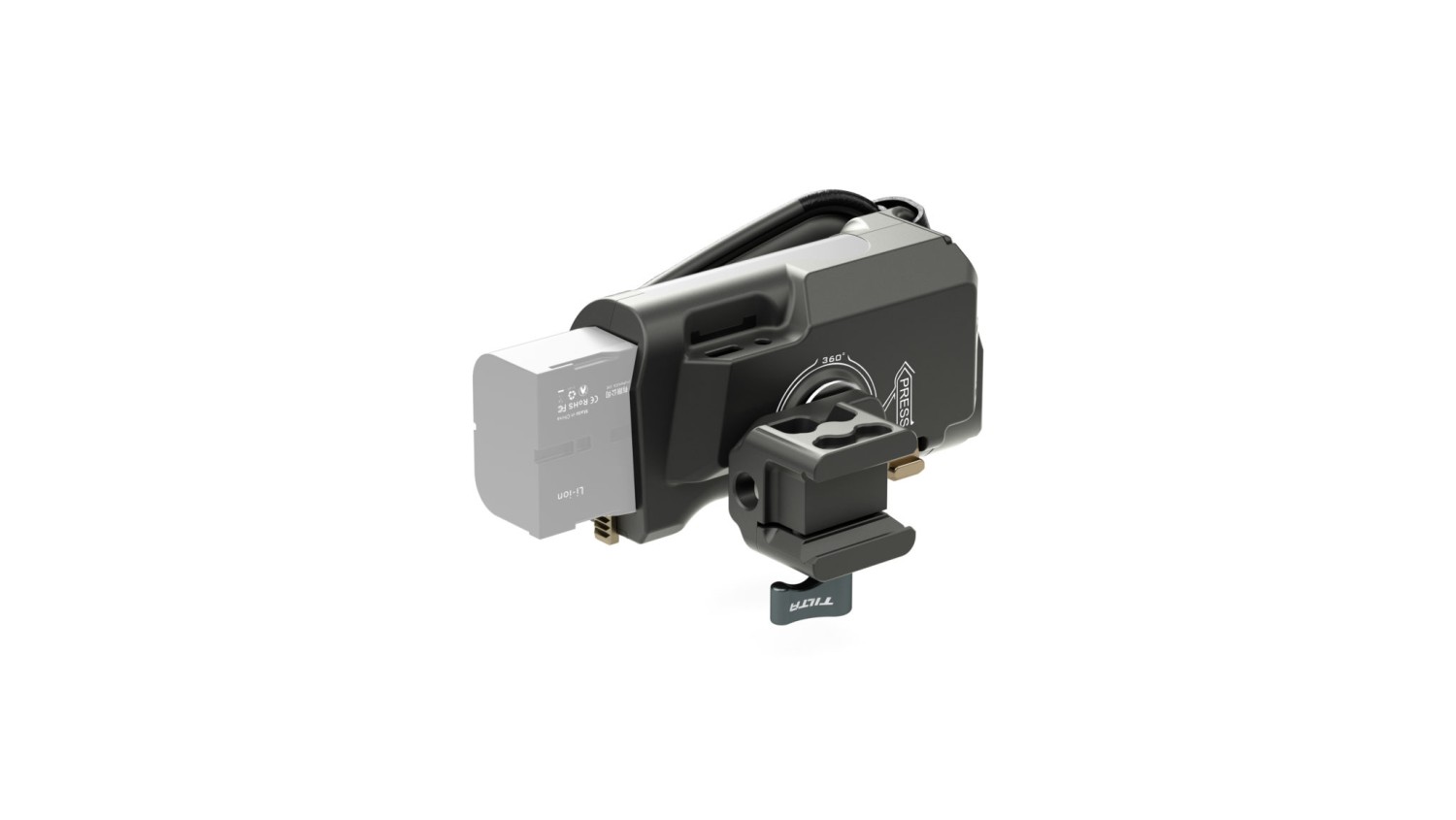 To napredno držalo se pritrdi na levo stran kletk za kamere Tiltaing. Vhod za baterijo na dnu ročaja omogoča uporabo baterije Sony F570 za napajanje različnih dodatkov prek 8-voltnega USB-C in 12-voltnega enosmernega izhoda.