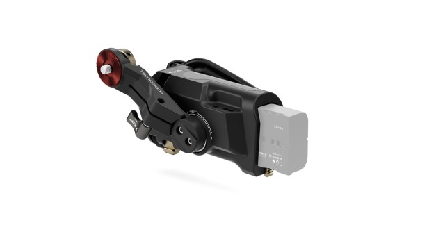 Vhod za baterijo na dnu ročaja omogoča uporabo baterije Sony F570 za napajanje motorja Nucleus Nano prek 8V izhoda USB-C. V ročaj je vgrajen tudi izhod za enosmerni tok 12 V.
