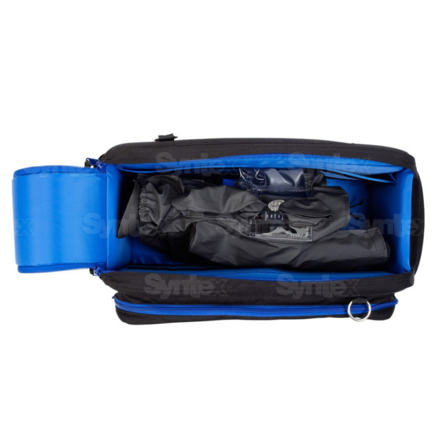 Torba je izdelana iz močne vodoodporne tkanine in ima dvojne (modre) zadrge YKK®, ki z enim samim potegom odprejo zgornjo klop