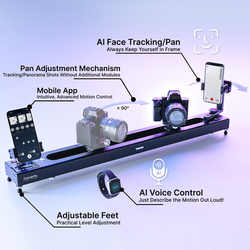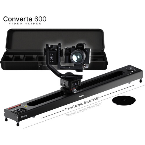 Trexo Converta C600 Complete je vsestranski motorizirani sistem za drsenje fotoaparata, ki je narejen za resne ustvarjalce in filmarje. S 33,5-palčno dolžino in 25,6-palčno potovalno razdaljo omogoča tekoče vodoravno ali navpično premikanje kamere, izboljšano s funkcijo 90-stopinjskega obračanja in vgrajenim 360-stopinjskim obračalnikom za dinamične rotacijske posnetke.