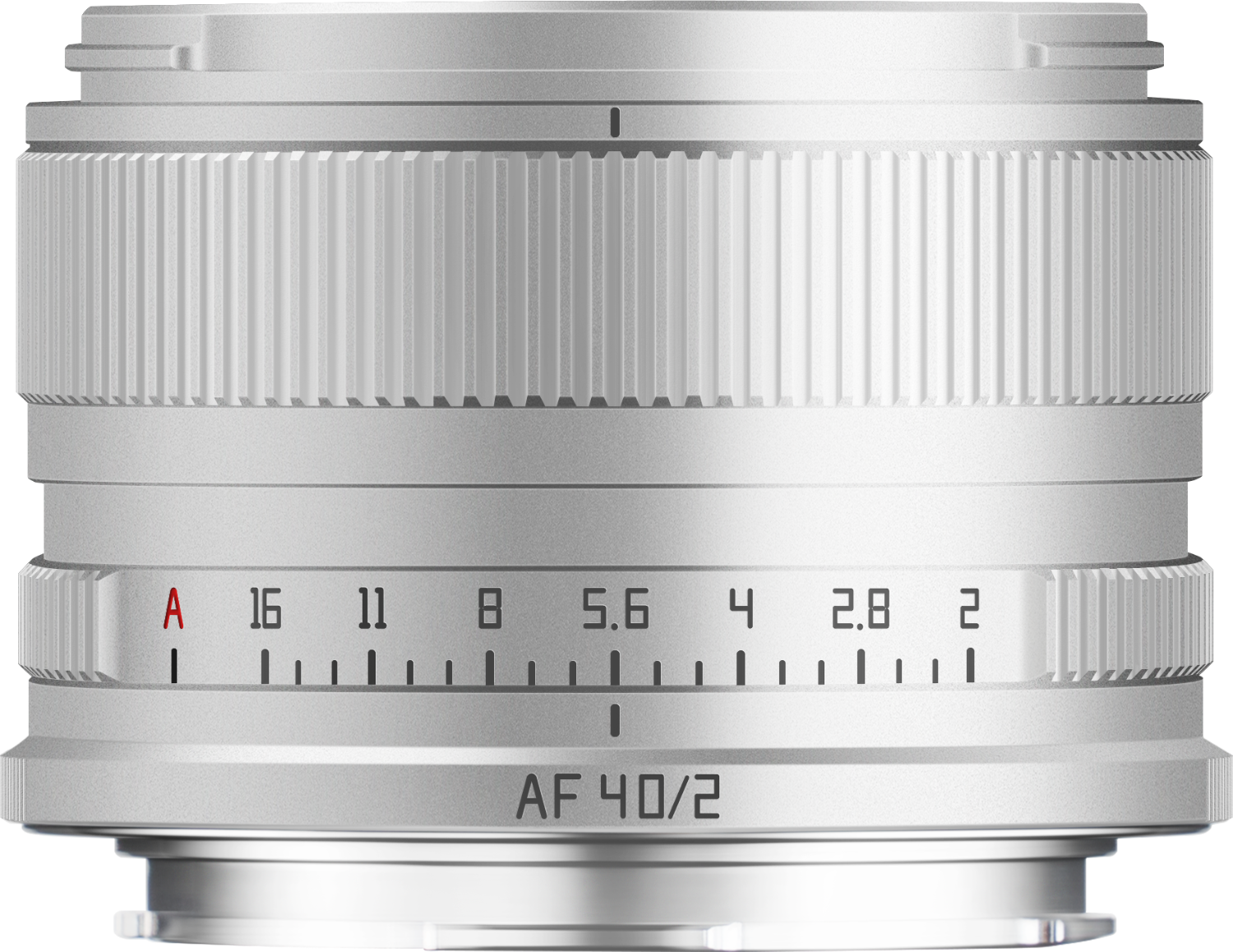 TTArtisan AF 40 mm F2.8 L Silver – kompakten polnoformatni avtofokusni objektiv: hiter STM AF, svetla zaslonka F2 za kremast bokeh, ED/ASPH optika za ostre slike z visokim kontrastom, zaslonka z klikom, bližinska ostritev 0,4 m, celokovinska srebrna konstrukcija s sončnikom – vsestranski »normalni« objektiv za ulično fotografijo, potovanja, portrete in slabo osvetlitev.