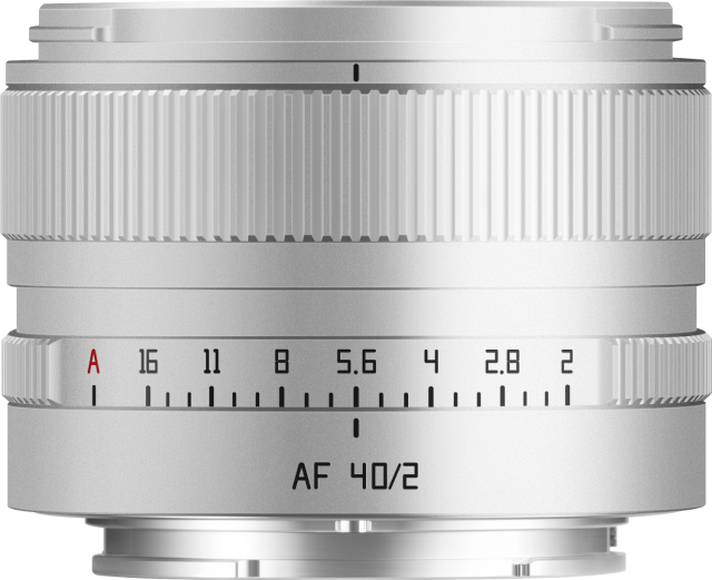 TTArtisan AF 40 mm F2 Sony E Silver – kompakten polnoformatni avtofokusni objektiv: hiter STM AF, svetla zaslonka F2 za kremast bokeh, ED/ASPH optika za ostre slike z visokim kontrastom, zaslonka z klikom, bližinska ostrina 0,4 m, kovinska srebrna konstrukcija s sončnikom – vsestranski »normalni« objektiv za ulično fotografijo, potovanja, portrete in slabe svetlobne razmere.