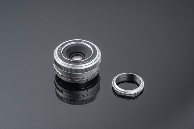 Poleg tega je v paketu miniaturna srebrna zaslonka objektiva, majhen kovinski element, ki služi tudi za zaščito sprednjega elementa objektiva, podobno kot pri modelu Fujinon XF 27mm.