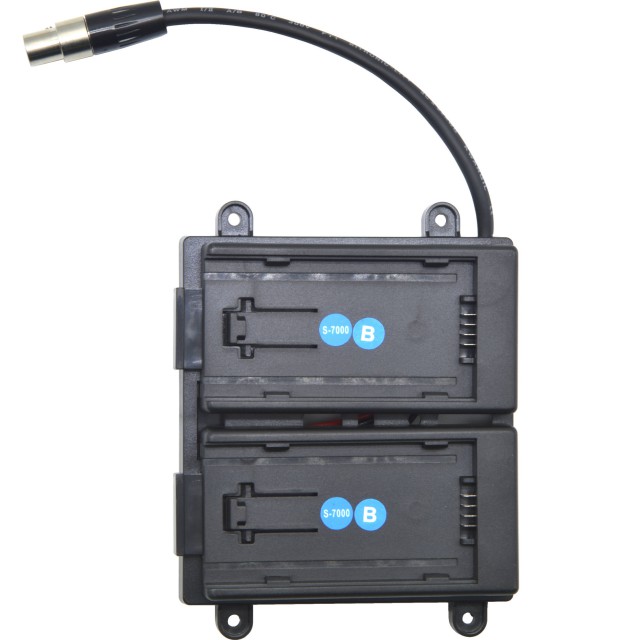 Monitor F-7H napolnite z dvema baterijama Panasonic AF-100, tako da priključite to držalo za baterije podjetja TVLogic. Nosilec Panasonic AF-100 se pritrdi na hrbtno stran monitorja F-7H in poveže s štiripolnim priključkom XLR za napajanje mini monitorja. Zagotavlja napajanje 12 VDC, 3A.