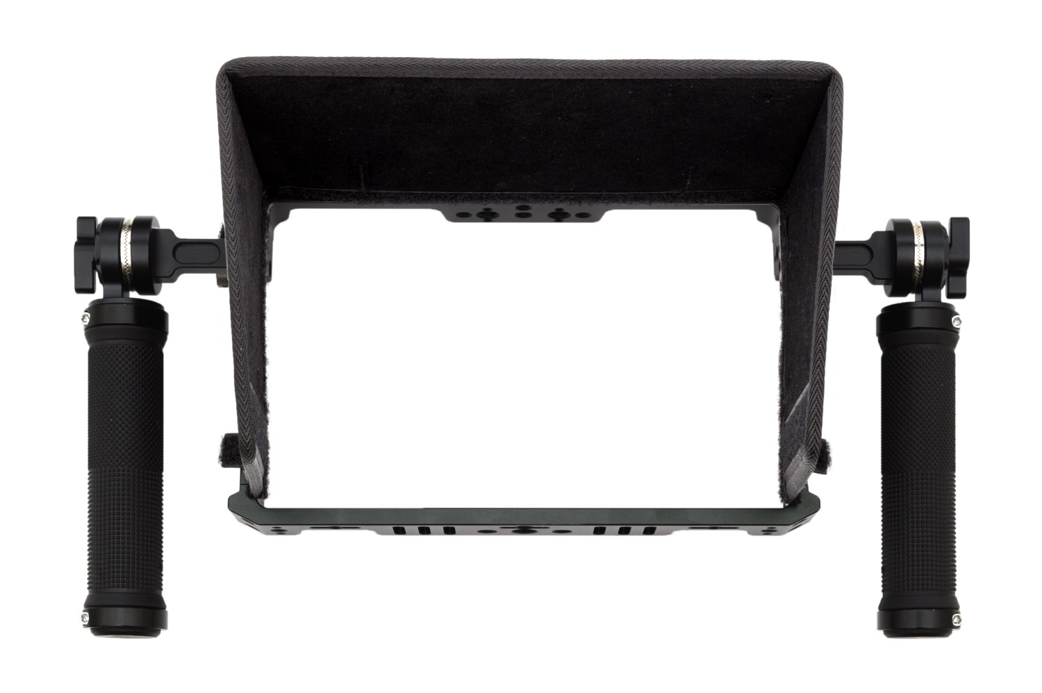 Kletka iz aluminija za 7" monitorje TVLogic F-7H/M2/F-7HS s parom ročajev (ARRI rozeta) in senčnikom. Kletka ima tudi več navojev 1/4"-20 in 3/8"-16 za dodatno opremo, vtičnice za namestitev zanke/traka in držalo za kabel HDMI...