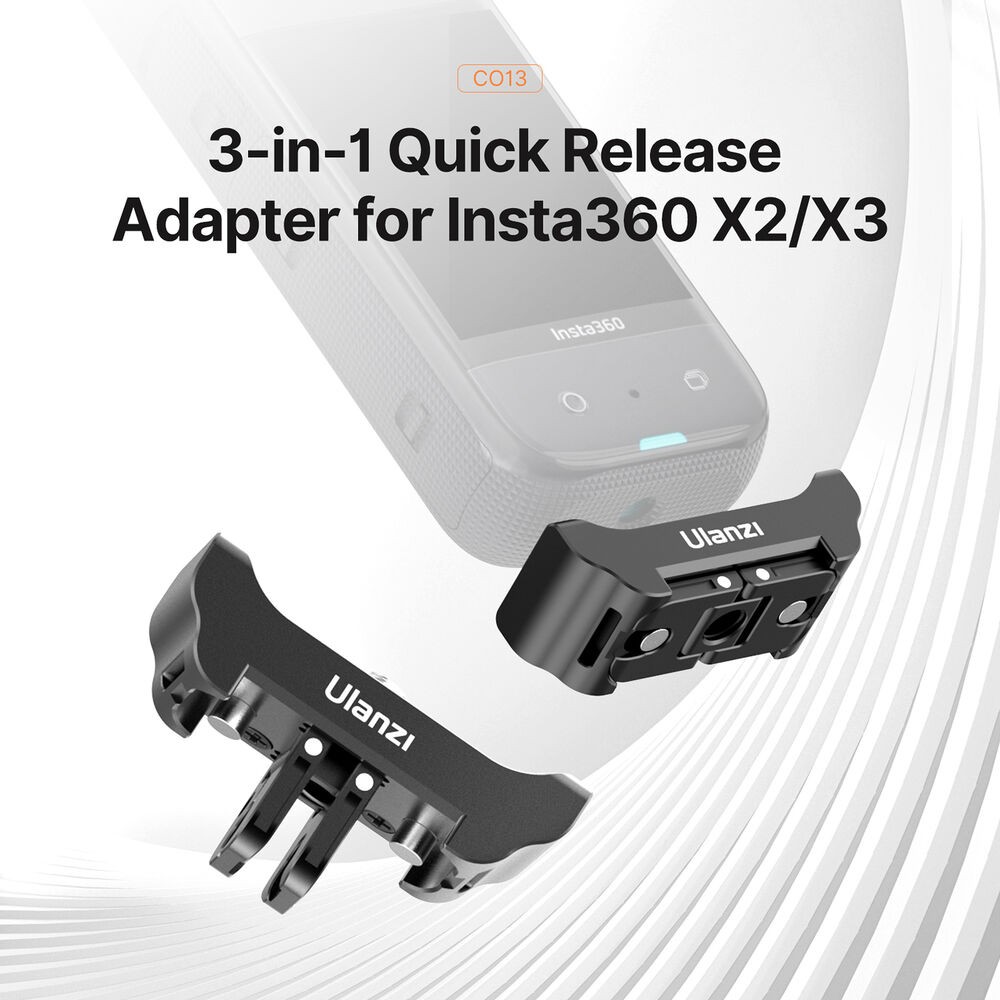 Ulanzi 3-v-1 adapter za hitro sprostitev za Insta360 X3/X2 je vsestranska rešitev za pritrditev za ljubitelje akcijskih kamer. Adapter je zasnovan za kamere Insta360 X3 in X2 in omogoča hitro in varno pritrditev na standardne 3-zobečne nosilce, stative z navojem 1/4"-20 ali magnetne nosilce dodatkov DJI.