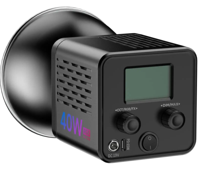 Svetilka, ki jo poganja vgrajena 3400 mAh polnilna baterija, podpira brezžično delovanje in hitro polnjenje prek DC ali USB-C. Pri polni moči 50 W deluje do 50 minut, pri nižji svetlosti pa še dlje. Svetilka vključuje 20 prilagodljivih svetlobnih učinkov, kot so zasilna svetila, ognjemet, sveča, zabava in stroboskopski načini, kar omogoča dinamično ustvarjanje prizorov. Teža svetilke je le 490 g, zato jo je mogoče držati v roki ali pritrditi z navojem 1/4"-20, vključeni reflektor in difuzijski kupol pa omogočata dodatno nadzorovanje svetlobnega izhoda. Kompaktna, vsestranska in zmogljiva svetilka Ulanzi 40WRGB je zanesljivo orodje za osvetljevanje za ustvarjalce, ki potrebujejo zmogljivost brez velikih dimenzij.