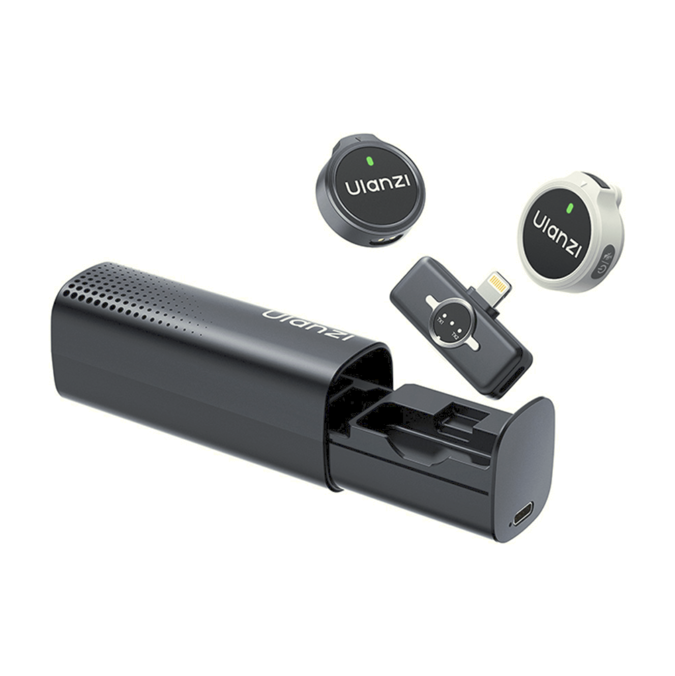 Brezžični mikrofon Ulanzi A21 (črn in bel – Lightning) je ultra lahek brezžični mikrofon velikosti gumba za naprave iOS. Z 360° omnidirekcionalnim snemanjem, zmanjšanjem šuma z umetno inteligenco in brezžičnim dometom do 100 m zagotavlja kristalno čisti zvok za vloge, intervjuje in neposredne prenose. Z 6 urami delovanja na oddajnik in skupno 30 urami z polnilnim etuijem je idealen za celodnevno snemanje.