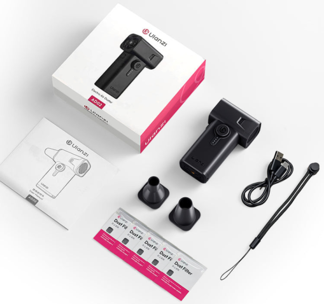 Ulanzi AD02 X086 STORM Electric Air Duster II je vsestranski čistilni aparat, zasnovan za fotografe, tehnološke navdušence in domače uporabnike. Ta prenosni aparat za čiščenje z zrakom je dovolj kompakten, da se prilega v dlan, tehta pa le približno 300 g, zato ga lahko vzamete s seboj kamorkoli in zavzame manj prostora kot pametni telefon.