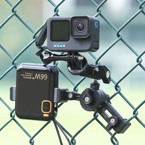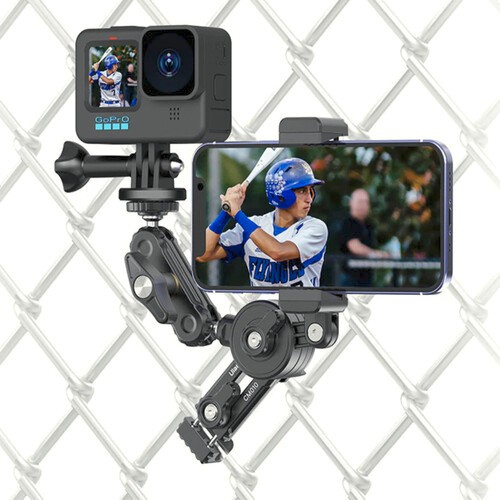 Ulanzi Baseball Fence Mount je rešitev za pritrditev dveh naprav, ki se varno pritrdi na ograjo iz žične mreže in vam omogoča snemanje tekem ali treningov z akcijo kamero in pametnim telefonom drug ob drugem. Opremljen je z glavo z žogico, nastavljivo sponko za telefon in trpežno konstrukcijo, zato je idealen za snemanje iz več zornih kotov s stranskega dela igrišča.