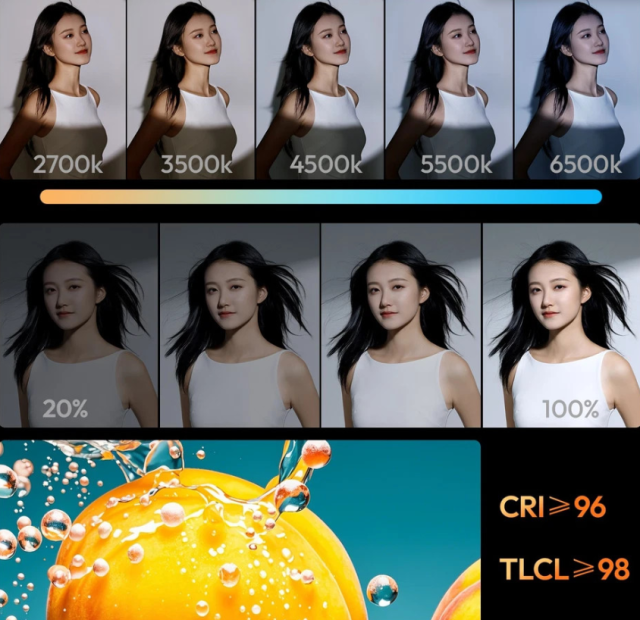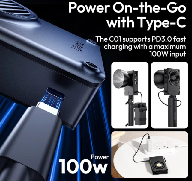 Natančno nastavite svetlost od 0 do 100 % in prilagodite barvno temperaturo med 2700 K in 6500 K za raznolike svetlobne razpoloženja. S CRI 96+ in TLCI ≥98 vaše posnetke vsakič zaznamujejo živahne, realistične barve. C01 podpira vhod USB Type-C PD3.0 (do 100 W) za prilagodljive možnosti napajanja, kar vam omogoča uporabo powerbank, baterij V-mount ali drugih prenosnih virov.