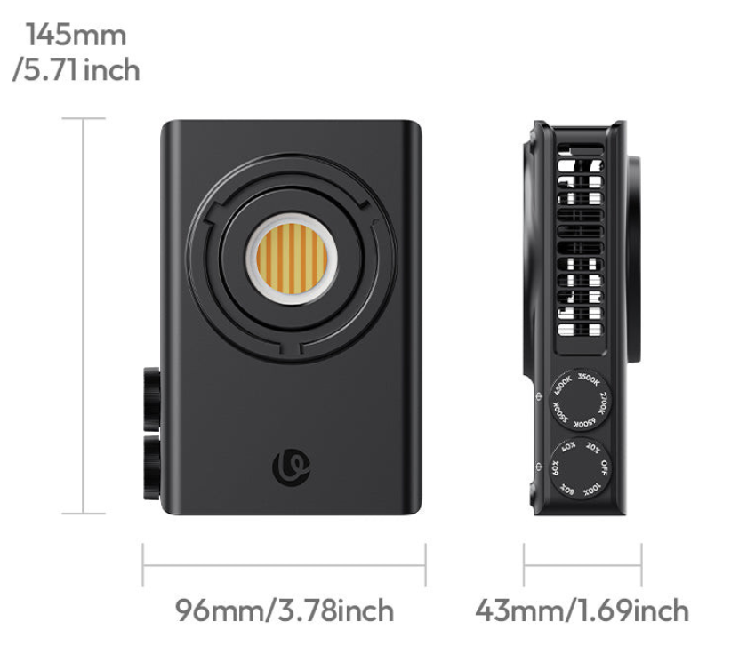Ulanzi L099 C01 100W COB LED video luč združuje prenosljivost in profesionalno moč v elegantnem, ultra tankem dizajnu. Teža svetilke je le ≈330 g (≈390 g s standardnim reflektorjem), zato jo lahko enostavno shranite v žep ali torbo za fotoaparat in jo uporabljate za snemanje na poti. Kljub kompaktni velikosti svetilka oddaja 100 W svetle, nastavljive dvo-barvne svetlobe z kotom snopa 120°, kar jo naredi idealno za osvetljevanje bližnjih in širokih površin.