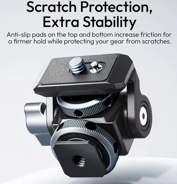 Standardni 1/4-palčni nastavek zagotavlja široko združljivost z večino stativov in opreme za kamere, kar ga naredi praktično dopolnilo opreme vsakega ustvarjalca.