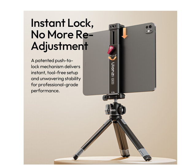 Ulanzi CA15 OneLock Tablet Clamp je profesionalna rešitev za pritrditev, zasnovana za varno pritrditev tabličnih računalnikov z diagonalo zaslona od 7,9" do 12,9". Narejena je za ustvarjalce, učitelje, streamerje in strokovnjake ter ponuja stabilno in prilagodljivo platformo za uporabo tabličnih računalnikov s stativi, stojali in kamerami.