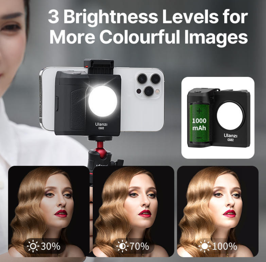 Ulanzi CG-02 Smartphone Camera Grip je vsestranski ročni ročaj z vgrajeno dodatno svetlobo in daljinskim upravljalnikom Bluetooth. Zasnovan je za snemanje z eno roko, izboljša stabilnost, osvetlitev in nadzor, zaradi česar je idealen za vloganje, neposredno predvajanje in mobilno fotografijo.