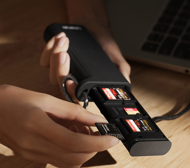 Z podporo za kartice SD UHS-I in UHS-II ter formate Micro SD CR2 zagotavlja hitro in zanesljivo delovanje na več napravah, vključno s fotoaparati, pametnimi telefoni, droni in akcijskimi kamerami. Njegova dvojna reža za kartice omogoča hkratno branje, medtem ko tehnologija USB 3.1 zagotavlja izjemno hitre hitrosti prenosa do 312 MB/s – kar vam omogoča prenos 1 GB podatkov v le nekaj sekundah.