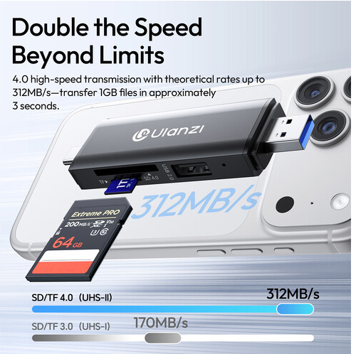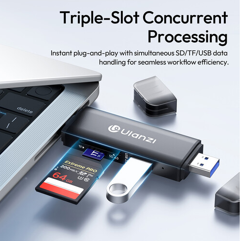 Bralnik kartic Ulanzi CR3 3-v-1 4.0 je vsestranska in prenosna naprava, ki poenostavi vaš delovni tok, saj omogoča hiter in učinkovit prenos podatkov med več napravami. Zasnovan je za sodobne ustvarjalce in podpira kartice SD ter MicroSD (TF), hkrati pa ponuja združljivost z dvojnim vmesnikom prek priključkov USB-A in USB-C.