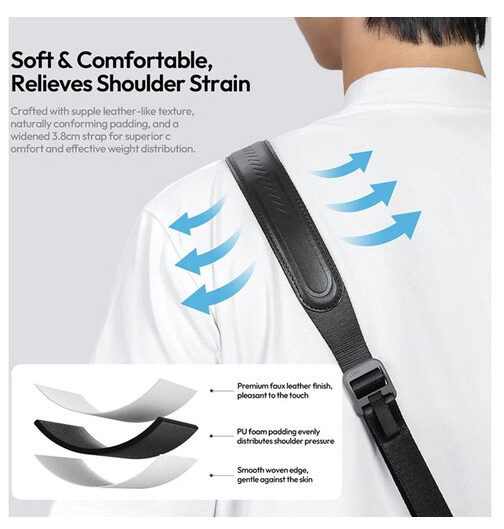 Ramenski pas za fotoaparat Ulanzi CSS1 U-Snap (srebrno-modra barva) združuje udobje, vzdržljivost in praktičnost za fotografe, ki so veliko na poti. Nosilnost pasu znaša do 60 kg, omogoča pa nastavitev dolžine z eno roko, opremljen je s podlogo iz visokokakovostnega umetnega usnja ter sistemom U-Snap za hitro pritrditev in snemanje…