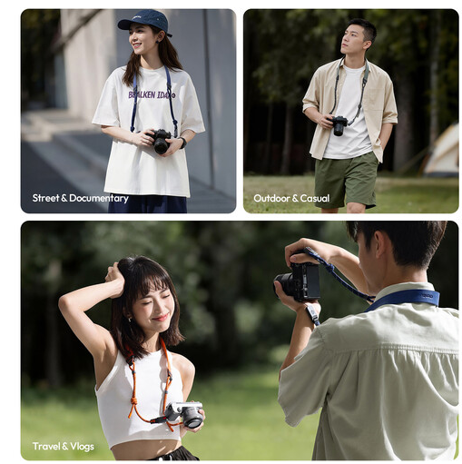 Svojo kamero lahko preprosto in z zaupanjem nosite s pomočjo ramenskega pasu za kamero Ulanzi CSS2 U-Snap v modri barvi Astral Blue. Ta pas, zasnovan za fotografe in ustvarjalce vsebin, ki cenijo udobje in učinkovitost, je opremljen z enoročnim zapiranjem s sistemom U-Snap, ki omogoča takojšnjo pritrditev ali snemanje kamere, pri čemer je vaša oprema ves čas varna. Cilindrična zasnova zapiranja se vrti, kar preprečuje zapletanje ali zvijanje med uporabo.