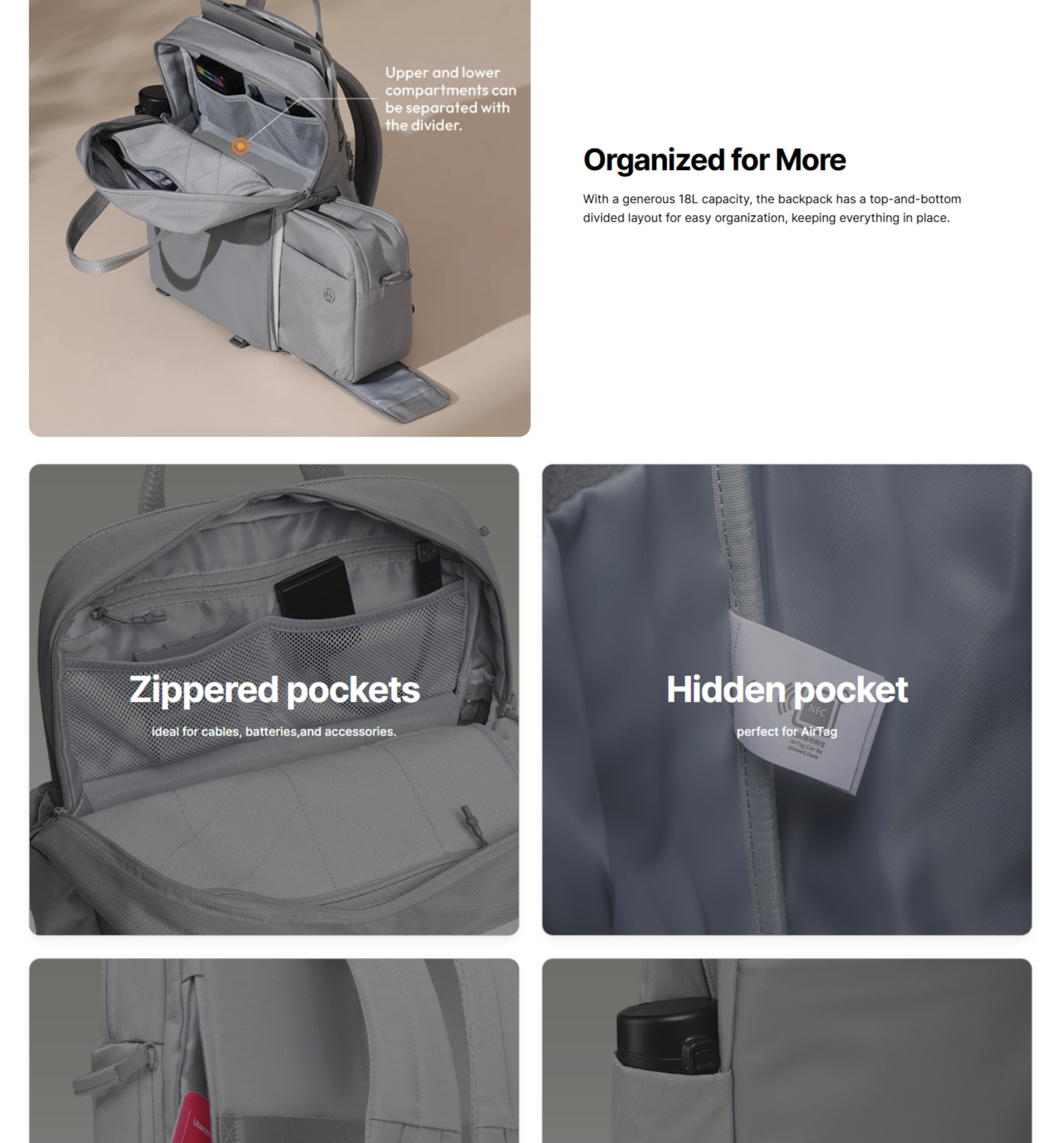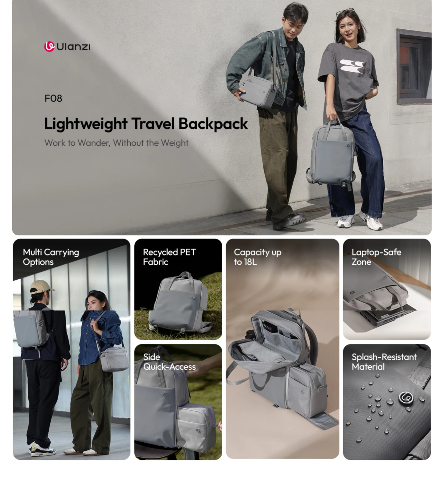 Izboljšajte svoje fotografiranje in potovalne izkušnje z lahkim potovalnim nahrbtnikom Ulanzi F08 18L. Ta vsestranska torba 2 v 1, ki tehta le 1,2 kg, ima snemljivo notranjo torbico za prilagodljivo uporabo kot nahrbtnik, torba čez ramo ali torba z enim trakom. Izdelana je iz trpežnega, vodoodpornega recikliranega materiala in gladkih YKK zadrg, ki zagotavljajo zanesljivo zaščito vaše opreme. S prostornino 18 litrov je primerna za 16-palčne prenosnike, DSLR-je, brezzrcalne kamere, objektive in stative. Prilagodljivi zložljivi predelki in razporeditev od zgoraj navzdol omogočajo enostavno organizacijo, stranski dostopni panel pa omogoča hiter dostop do opreme. Idealna za fotografe, vlogerje in popotnike.