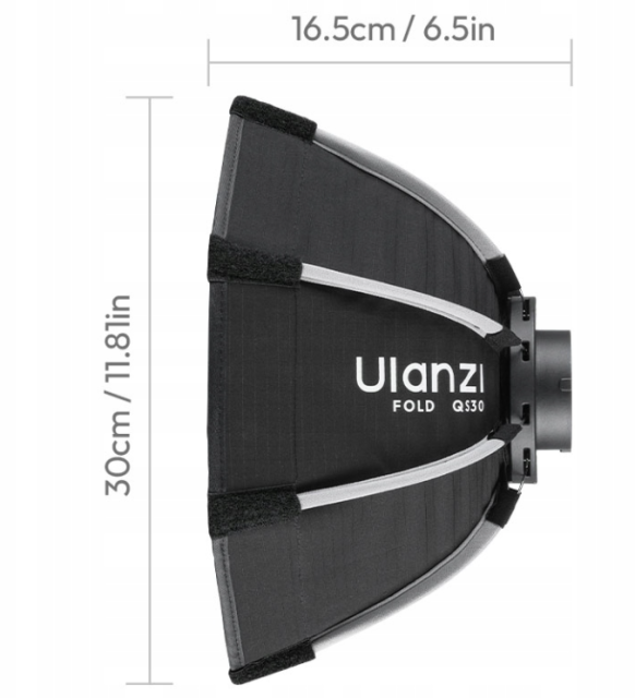 Softbox Ulanzi Fold QS30 Mini Bowens (30 cm) zagotavlja mehko in natančno osvetlitev v kompaktni, prenosni izvedbi. Opremljen je s hitro snemljivim Mini Bowens pritrdilnim sistemom, satasto mrežo in difuzorjem, zato je idealen za fotografijo in videografijo, vključno s portreti, vlogi in fotografiranjem izdelkov. Lahki in zložljivi softbox je kot nalašč za osvetlitev na poti.