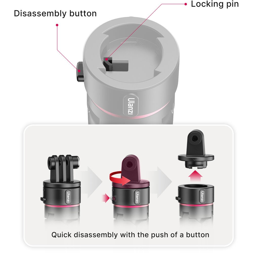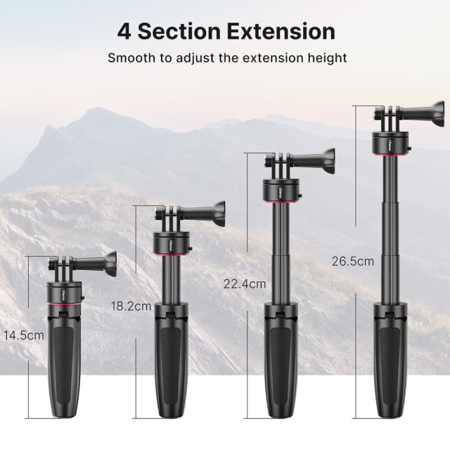 Stativ za akcijske kamere Ulanzi Go-Quick II je kompakten mini stativ 2 v 1 in palica za selfije, zasnovan posebej za akcijske kamere. Opremljen je z magnetnim sistemom za hitro sprostitev in vgrajeno podaljševalno palico, ki omogoča hitro namestitev, prenosljivost in raznolike snemalne kote za ustvarjalce, ki so vedno v gibanju.