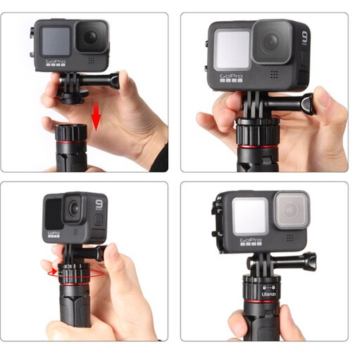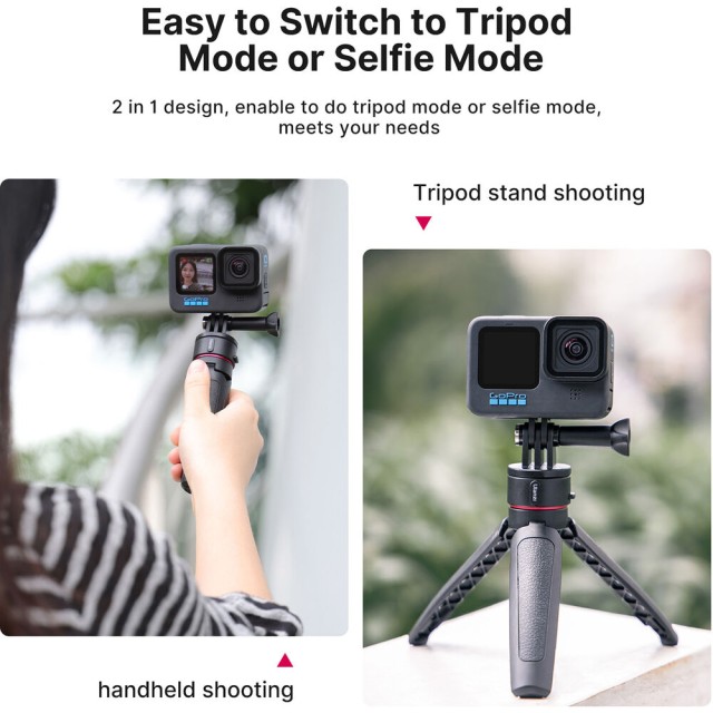 Mini stativ Ulanzi Go-Quick II 2-v-1 je pametna, lahka rešitev za uporabnike akcijskih kamer, ki potrebujejo hitrost in prilagodljivost. Narejen je za nemoteno delovanje z akcijskimi kamerami GoPro, DJI in Insta360, uporablja pa magnetni sistem hitrega sprostitev z dvokrakim nosilcem za hitro in varno pritrditev brez mučnega vijačenja vijakov. Trije premični nogi stativa zagotavljajo stabilno podporo na mizi, vgrajena 4-delna podaljševalna palica pa se raztegne od 5,7 do 10,4 palca, kar omogoča, da se uporablja tudi kot kompakten selfie palica ali ročni ročaj. Go-Quick II je izdelan iz trpežne ABS plastike in aluminija, tehta le 3,4 oz, kar ga naredi idealnega za potovanja, vloganje, šport in vsakodnevno snemanje akcijskih posnetkov.