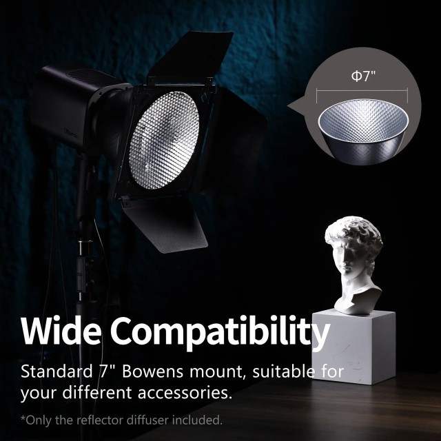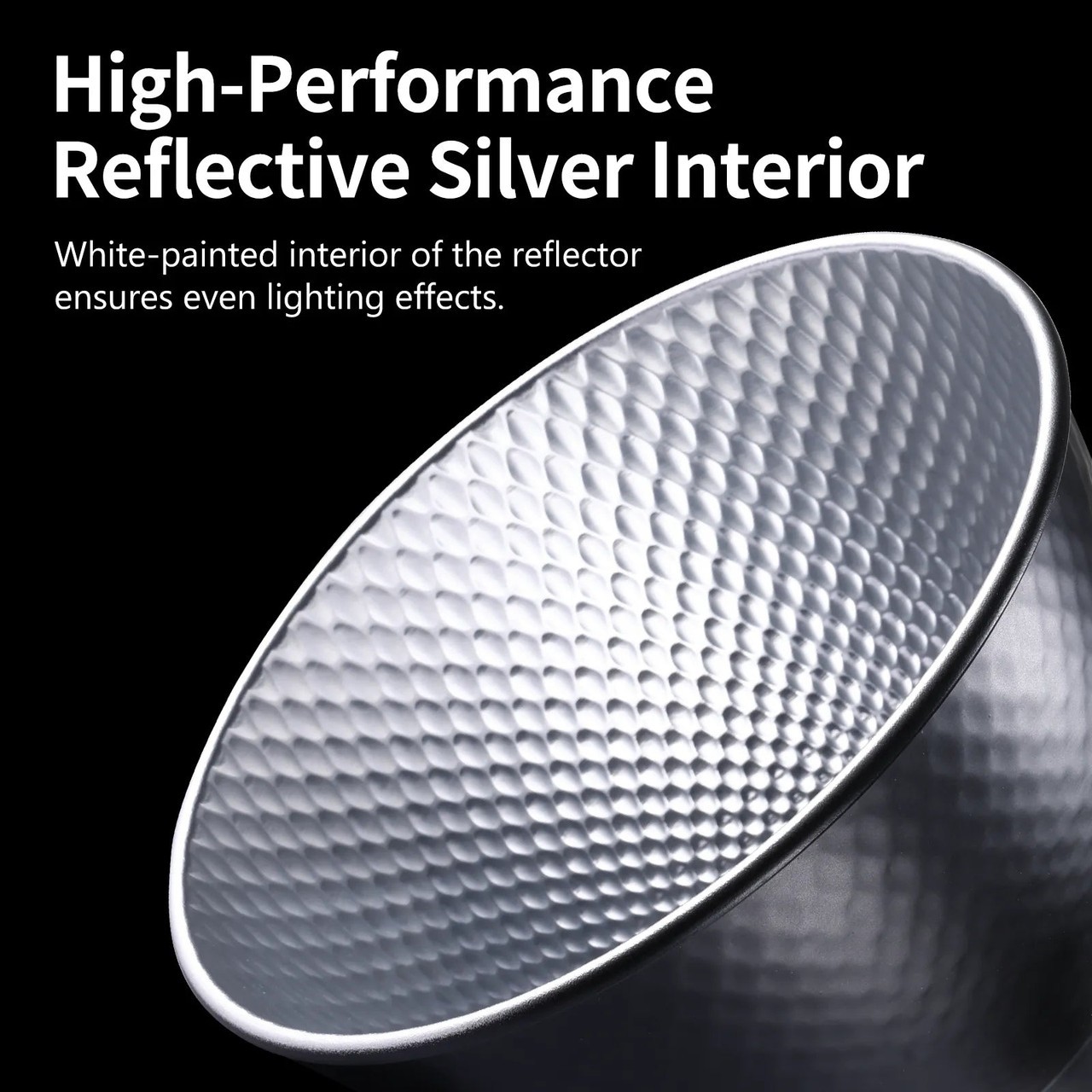 Ulanzi HT002 7" standardni reflektor z Bowensovim nastavkom je lahek in trpežen aluminijasti reflektor , zasnovan za svetilke z Bowensovim nastavkom. Njegova odbojna srebrna in belo pobarvana notranjost zagotavlja enakomerno, mehko svetlobo, zaradi česar je idealen za fotografijo, videografijo in snemanje na poti.
