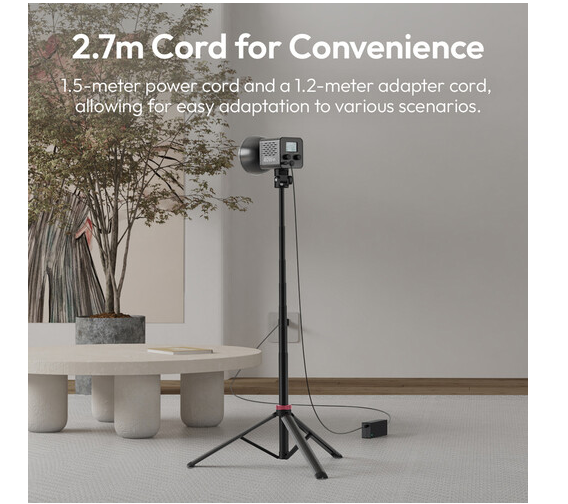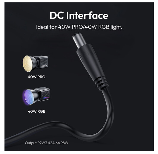 Napajalnik Ulanzi HT005 DC je zasnovan za učinkovito in varno napajanje svetilk Ulanzi 40W Pro in RGB. Podpira širok vhodni napetostni razpon 100–240 VAC in izhodno napetost 19 V pri 3,42 A (64,98 W), da vaše svetilke delujejo s polno zmogljivostjo. Napajalnik ima skupno dolžino kabla 2,7 m, ki združuje 1,5 m napajalni kabel in 1,2 m kabel napajalnika, kar vam omogoča fleksibilnost pri namestitvi svetilk.