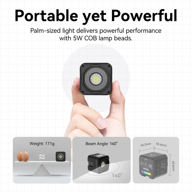 Vsestranska svetloba za vsako situacijo. Prenosna svetilka v velikosti dlani zagotavlja močno svetilnost z 5 W COB svetlobnimi diodami. 20FX za neomejeno ustvarjalnost.