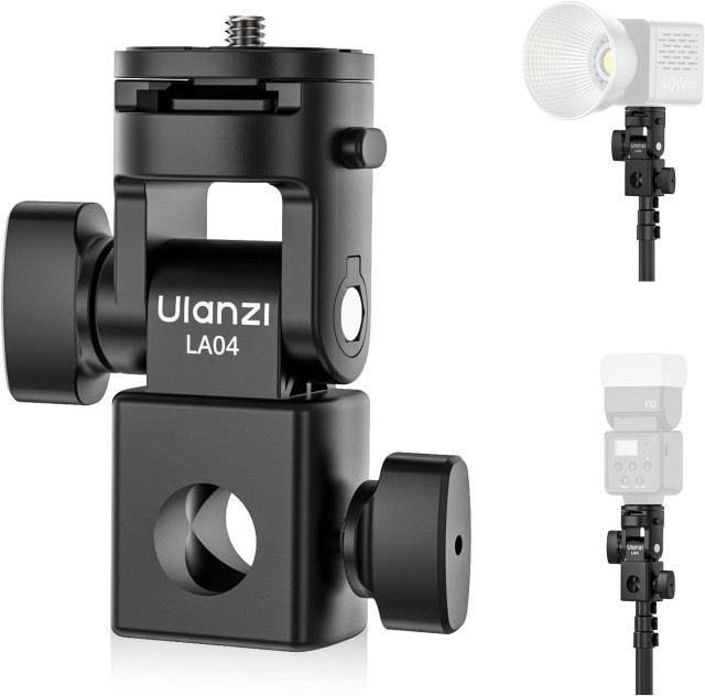 Ulanzi LA04 Light Stand Adapter je kompakten, vsestranski dodatek, ki omogoča namestitev kamer, držal za telefone in video luči na standardne svetlobne stojala. Z 1/4" vijakom, hladnim nosilcem in 180° nastavitvijo naklona omogoča prilagodljivo pozicioniranje za fotografije in videoposnetke, hkrati pa ostaja lahek in prenosljiv.