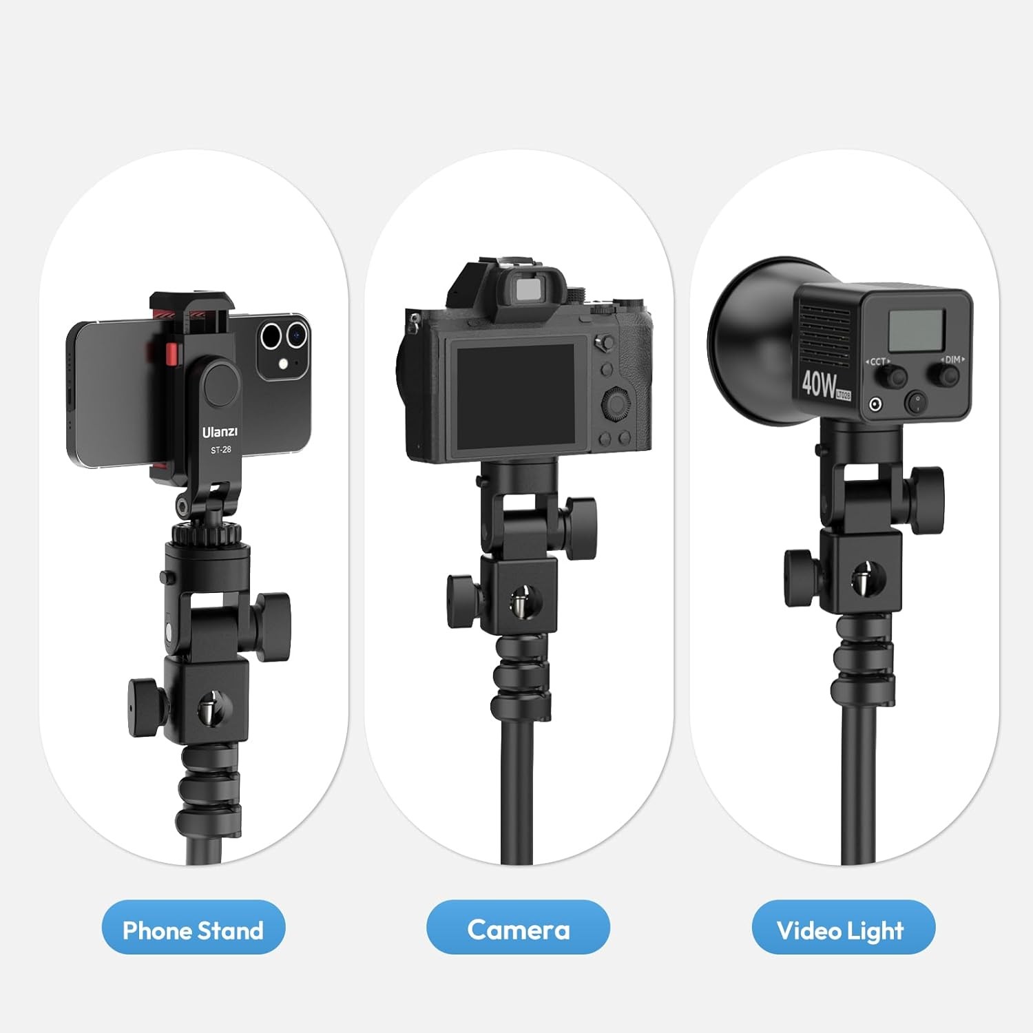 Razširite svoje ustvarjalne možnosti z adapterjem za svetlobni stojalo Ulanzi LA04. Ta adapter, zasnovan za ustvarjalce vsebin, fotografe in videografe, omogoča enostavno pritrditev kamer, video luči, držal za telefone in drugih dodatkov na katero koli standardno svetlobno stojalo.