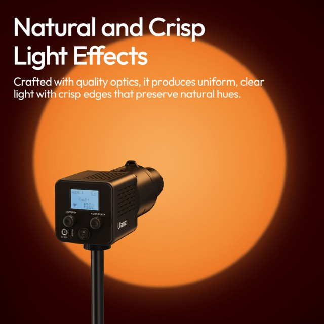 Ulanzi LAS007 Mini Bowens Mount Optical Snoot je kompaktno orodje za oblikovanje svetlobe, ki natančno nadzira in usmerja svetlobo ter projicira ustvarjalne gobo vzorce, zaradi česar je idealno za portrete, ustvarjalno fotografijo in kinematografsko osvetlitev videov.