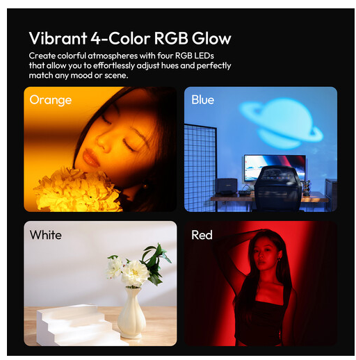 Ulanzi LM01 napaja 7500 mAh polnilna baterija, ki omogoča do 4,5 ure neprekinjenega delovanja, in se lahko priročno napolni v samo 3,5 urah prek USB-C. Z vgrajenim barvnim LED indikatorjem lahko med snemanjem hitro preverite stanje baterije. Svetilka je opremljena z 20 gobami za ustvarjanje dinamičnih projekcij, njen 1/4"-20 navoj in ARRI nosilec pa zagotavljata združljivost z različnimi stativi, zaradi česar je idealna za snemanje na poti, ustvarjalne svetlobne postavitve ali celo kot ambientalna dopolnilna svetloba.