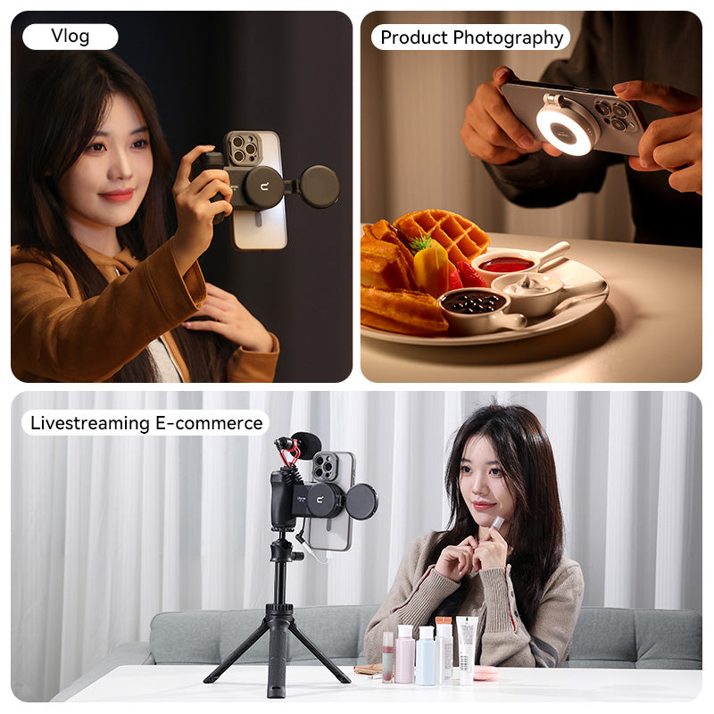 - Enostaven za uporabo: z magnetnim dizajnom (MagSafe) se ta svetloba lahko pritrdi na kovinske površine za prilagodljive spremembe scene. Nasveti: združljiv z MagSafe opremljenimi telefoni ali telefonskimi ovitki ali za uporabo z magnetnim obročnim nalepkom (brezplačno darilo).
