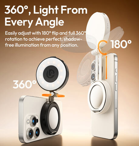 Magnetna dodatna lučka za mobilni telefon Ulanzi LM23 (2. generacija, bela) je kompaktna in vsestranska rešitev za osvetlitev, namenjena ustvarjalcem vsebin, vlogerjem in vsakodnevnim uporabnikom. Opremljena je z magnetnim pritrdilnim sistemom, združljivim s tehnologijo MagSafe, dvobarvno osvetlitvijo in vgrajenim ogledalom, kar zagotavlja ugodno osvetlitev za selfije, videoklice in spletno oddajanje. Z vgrajenim stojalom za telefon in možnostjo nastavitve v 360° kotu LM23 omogoča udobno uporabo brez rok kadarkoli in kjerkoli.