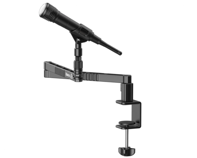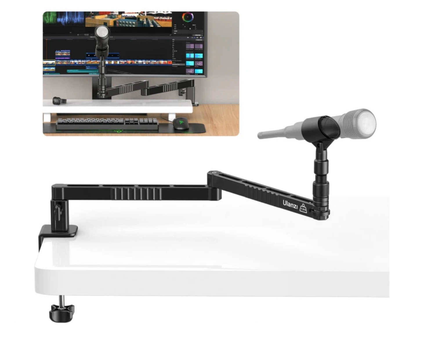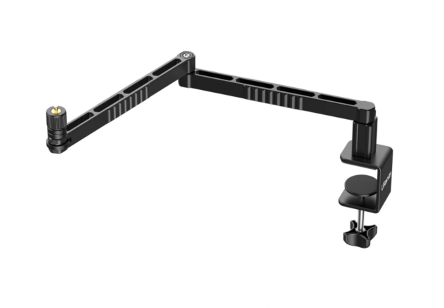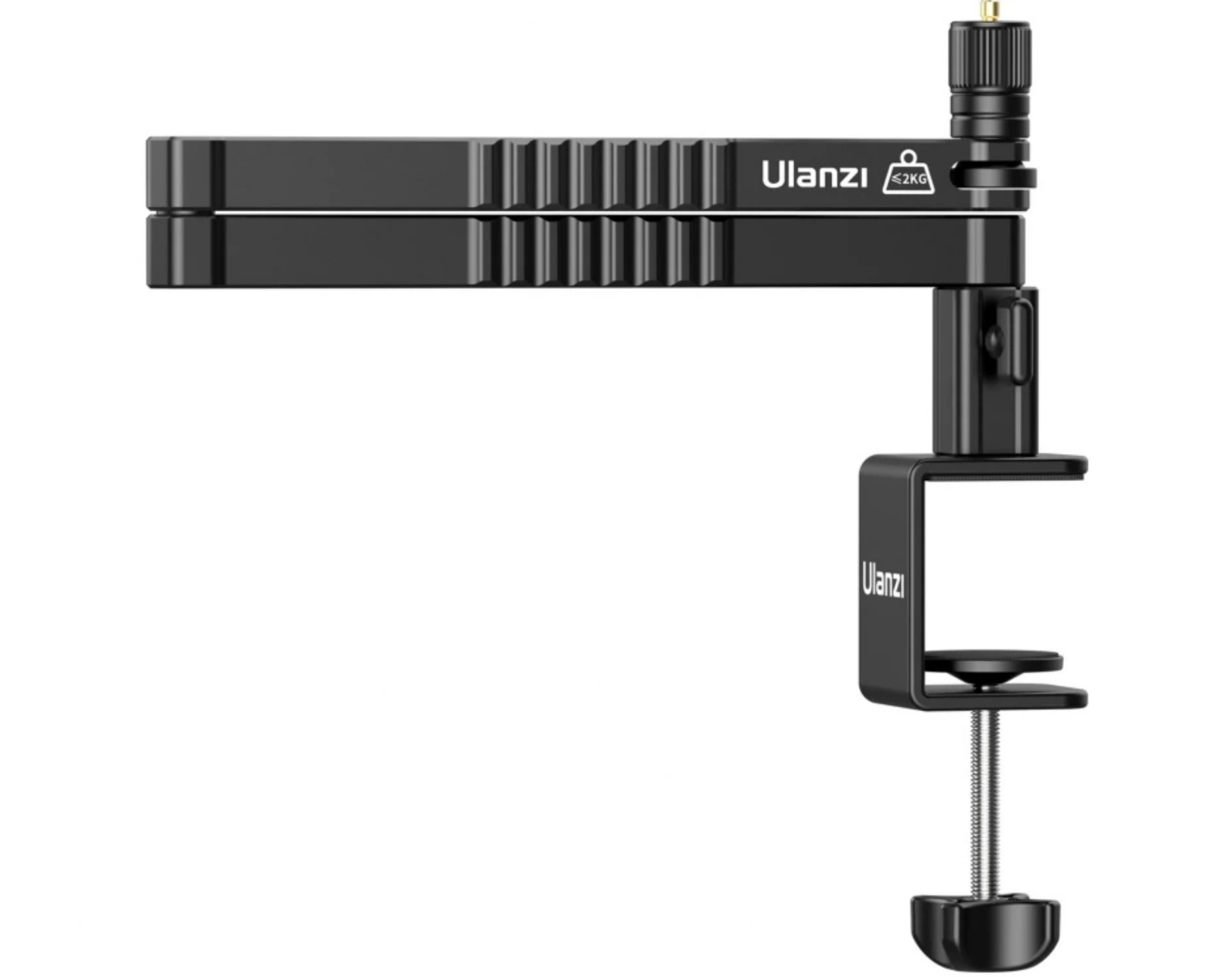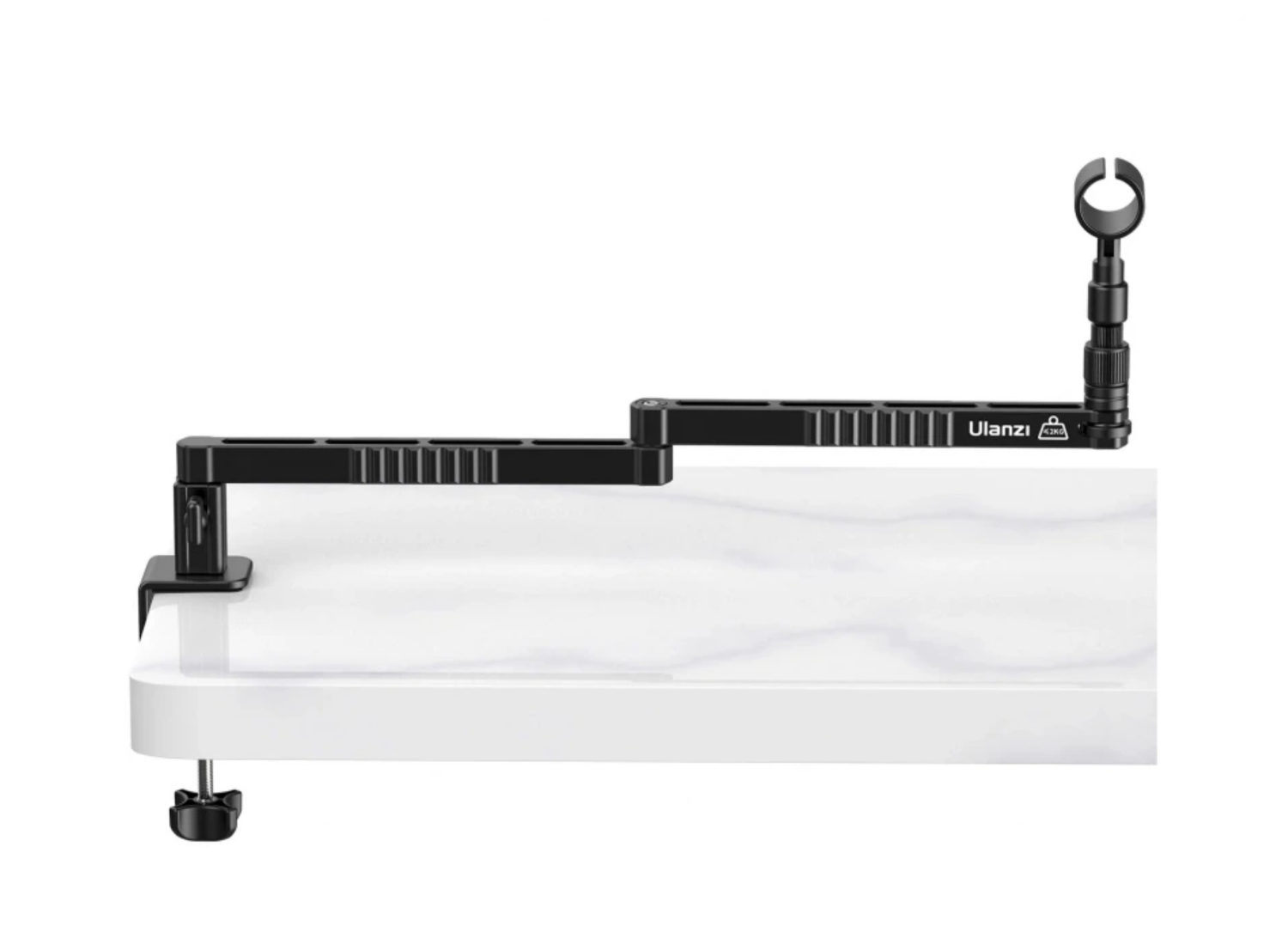 Aluminijasta nizkoprofilna ročica za mikrofone Ulanzi LS26. Idealna za namestitev na rob plošče ali mize.